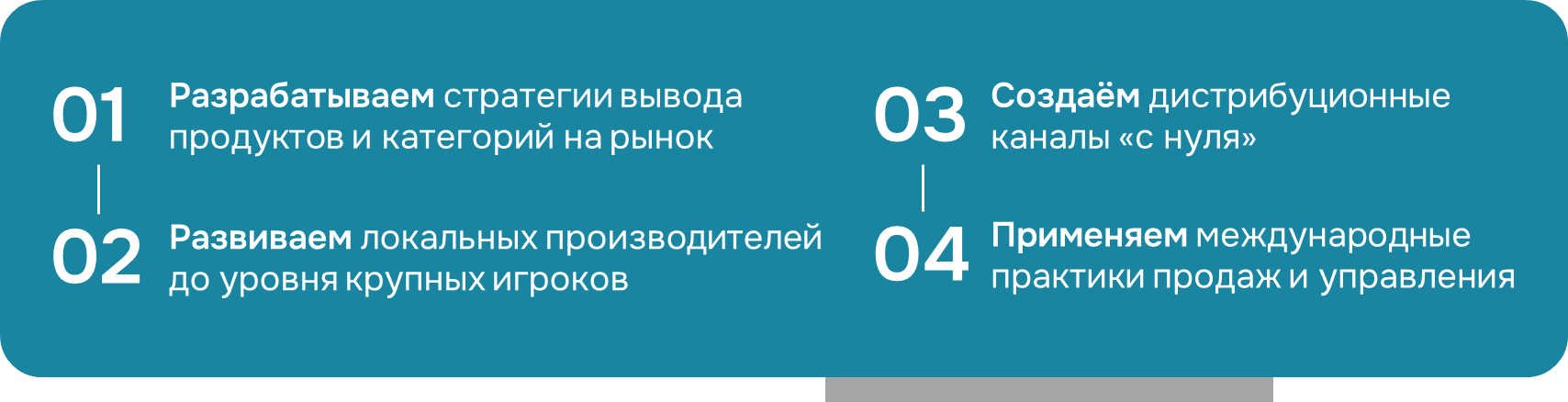 Мы создаём возможности для роста и развития локальных производителей, помогая их продуктам выходить на рынок, занимать сильные позиции и находить своих потребителей.